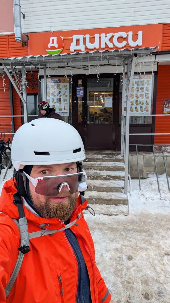 "Маршрут непростой. Преимущественно грейдер . Есть участки очень разбитого асфальта, которых не видно за снегом, но по качеству езды - Тверь от Калязина до Гориц. Очень скользко. Много участков нечищены, а просто придавлены машинами - колея и слабое основание. Наши колеса режут до льда и велосипед сносит.