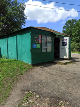 23. 465.7 км. - КП-7. Дурыкино - Фото-отметка на фоне магазина или автобусной остановки